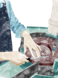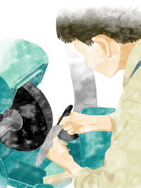 はさみは2枚の金属の刃が交差する瞬間、一点で対象物を切断します。はさみは何を切るかで刃の付け方(角度など)が大きく違います。そのはさみをつくった「つくり手」の意図を想像し、お客様が長く使える刃研ぎを行います。沢山使って開いてしまった刃合わせも調整してお手元にお返しいたします。